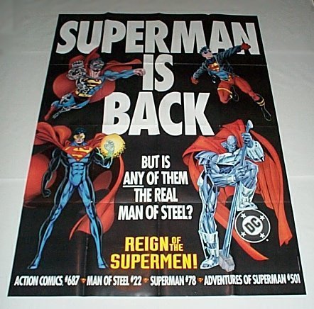Rare 1993 Giant-Size 54 x 40 "Superman Is Back/Reign of the Supermen" Wall Sized DC Comics Shop Dealer 1990's Window Display Promo Poster: Superboy/Steel Specification